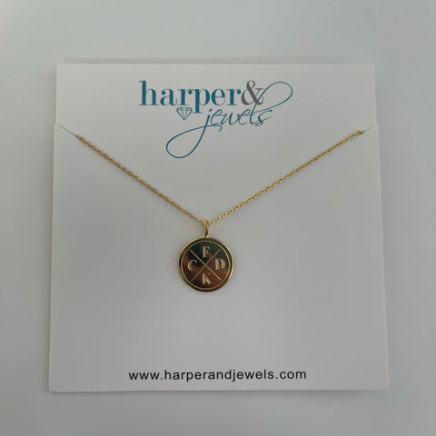 Gold Hexagon Medallion Pendant Letter Necklace