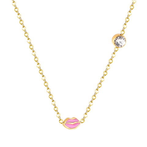 Pink Lip & Stone Dainty Pendant Necklace