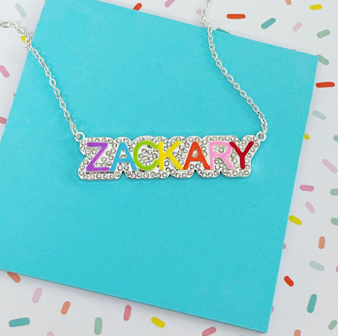Zodiac Block Font Nameplate Necklace