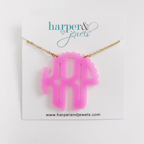 MADE FOR ME! 2" Acrylic Scallop Pink Monogram Necklace - KRP