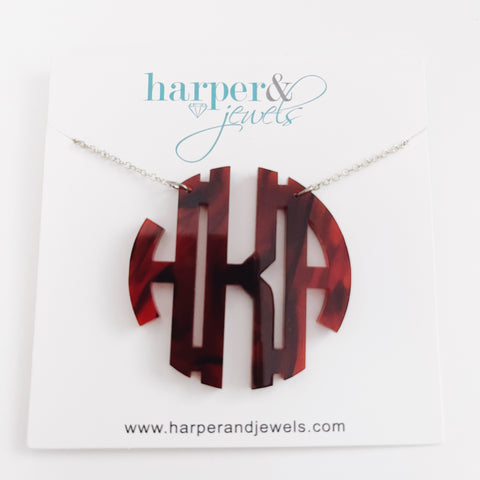 MADE FOR ME! 2" Acrylic Tortoise Monogram Necklace - HKA