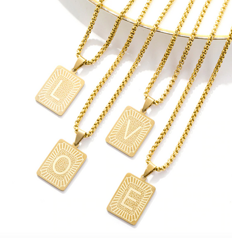 Rectangle Medallion Letter Necklace