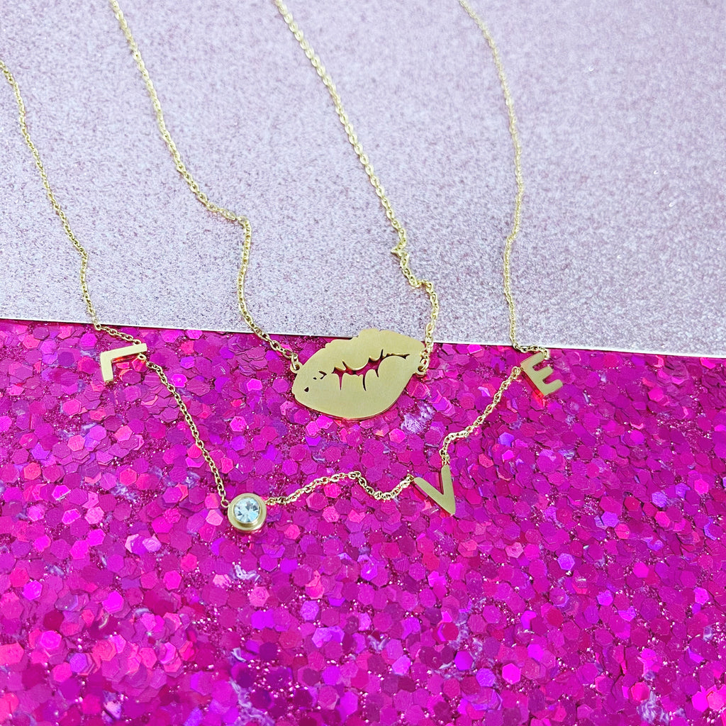 Our Dainty Lip Kiss necklace is the perfect piece to take you through the summer! It's stainless steel so you won't have to worry about tarnishing or changing color. You can wear it when you shower, swim, and go to the gym.