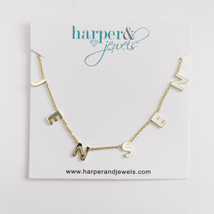 Our Hanging Letter Name necklace is here! Our newest addition to our personalized collection features hanging letters which is perfect for names, initials, and more. It's made of .925 Sterling silver, can be dipped in gold or rose gold, and is then polished to perfection!